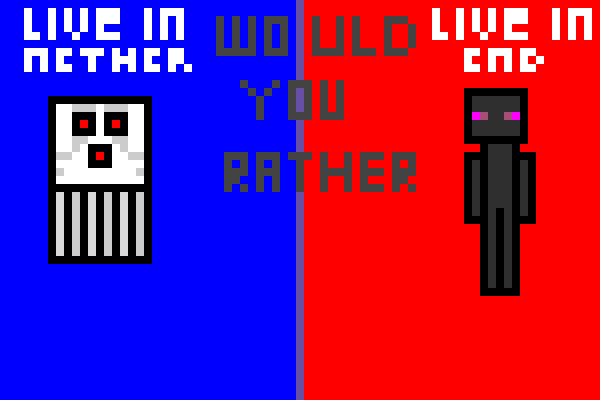 Download Would You Rather? Live in Nether or Live in End? thumbnail version ? It represents the smallest size of the drawing (where 1 pixel block = 1 px) |